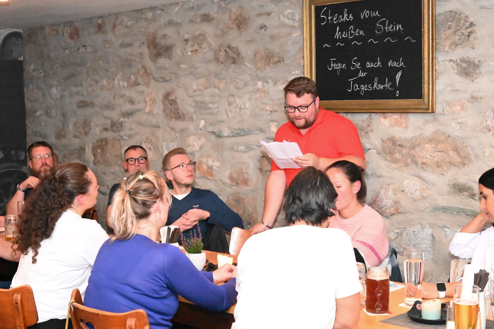 Nach dem gemeinsamen Essen startete Max mit den letzten kleinen Programmpunkten des Stammtisches. Er berichtete über die Neuerungen des Berufsbildes der Fachangestellten, aber auch Meister für Bäderbetriebe und gab einen kurzen Einblick in die Wiederinbetriebnahme der Bäderfachschule auf dem Rabenberg in Sachsen. Bevor es zum gemütlichen Teil ging, nutzte der Landesvorstand die Möglichkeit neue Mitglieder des BDS (Ralf Willuhn, Marcel Popp, Parnian Bitaraf, Ennur Duman und Leticia Fritsch) persönlich zu begrüßen und bedankte sich bei allen für die Teilnahme an der Veranstaltung, ein besonderer Dank geht an dieser Stelle noch mal an Hans-Jürgen Berg, Roger Discher, Peter Harzheim und unserem Vorstandskollegen Maximilian Faber. Gemeinsam verbrachten alle einen tollen, informativen Abend und viele nutzen die Zeit zum Austausch von Erfahrungen oder einfach zum kennen lernen. Kurz und knapp eine tolle und gelungene Veranstaltung zum Jahresende des Landesverbandes!